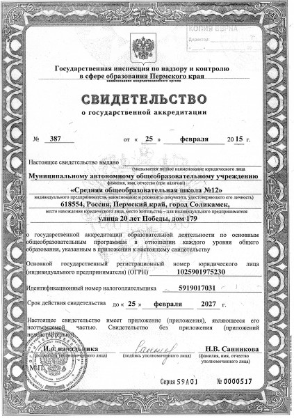 | Адрес электронной почты образовательной организации | sosh12-sol@sosh.permkrai.ru |